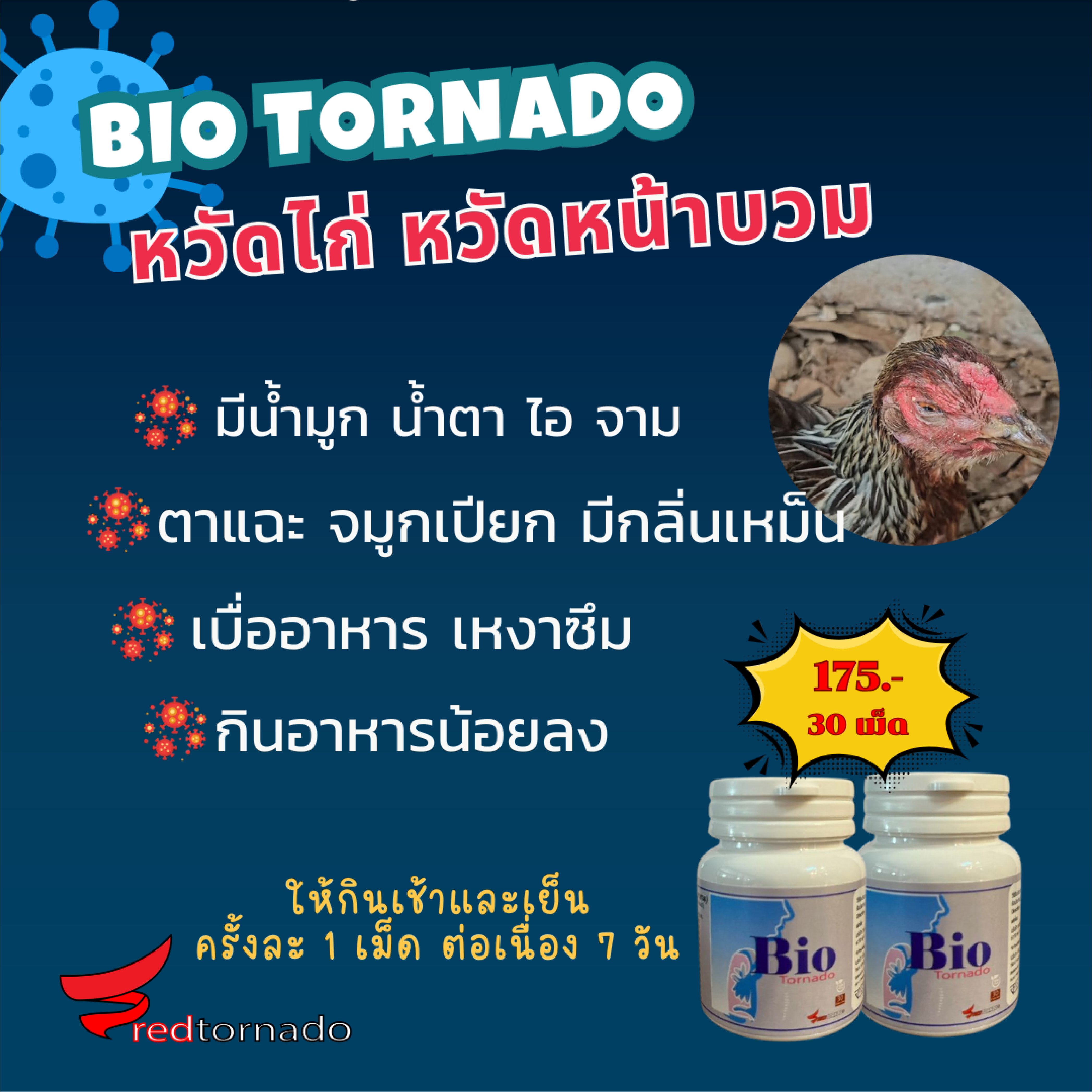 คำค้นหาที่เกี่ยวข้อง: หวัดหน้าบวมไก่, โรคไก่หน้าบวม, รักษาหวัดไก่, Bio Tornado, ยารักษาโรคไก่, โรคระบบทางเดินหายใจไก่, การเลี้ยงไก่, สุขภาพไก่